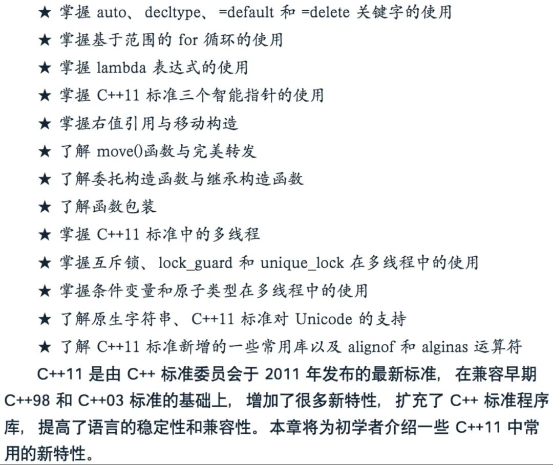 C++11是C++发展的一个分水岭,从此C++进入了所谓的“现代C++”阶段,往后C++14/17/20持续发展。
