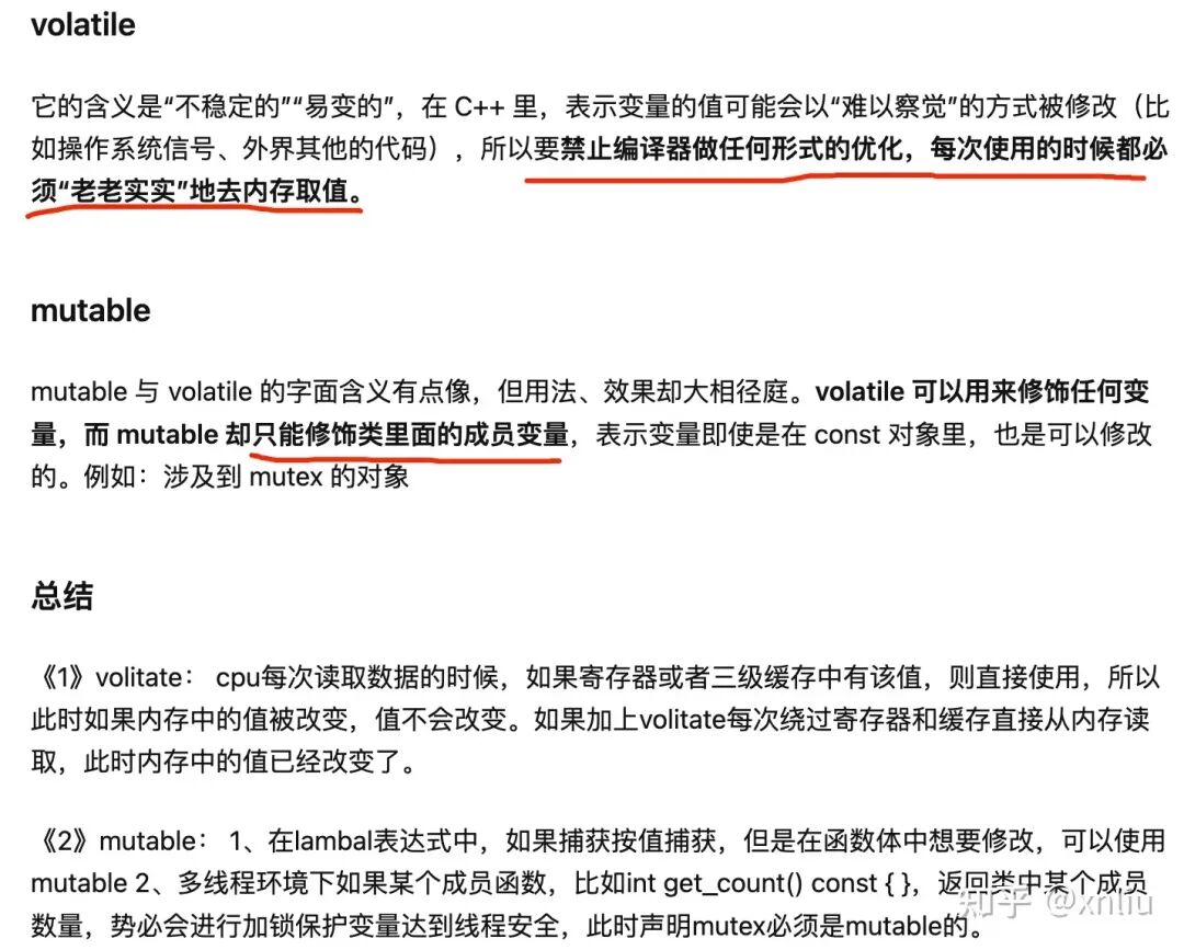 mutable:作用同volitile,只是mutable只能用于类成员函数。