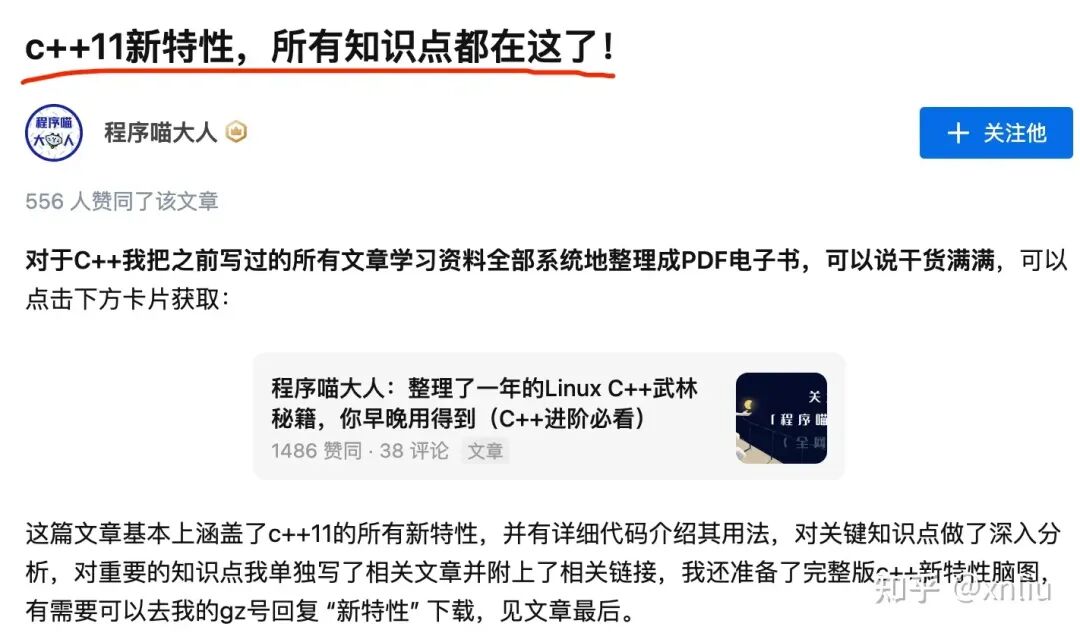 C++知识体系的搭建基于笔者过往的编程经验,而具体的知识点则参考了知乎上很多优秀文章,所有参考文章都附上了对应链接。