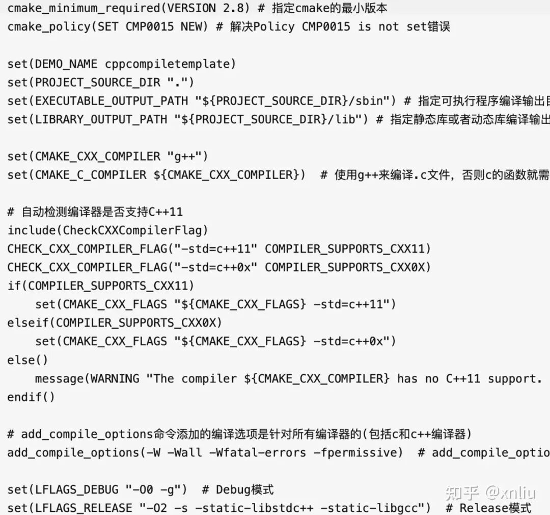 CMakeLists.txt主要通过函数的方式来组织编译规则,下面是一个示例文件: