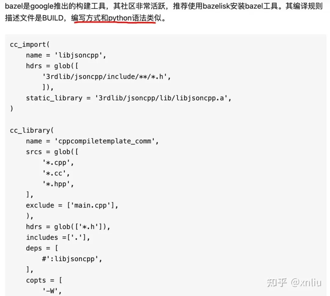 下面是bazel配置文件的写法,相比make和cmake更可读: