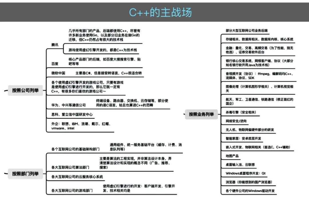 C++在行业里的主战场,有网友做了一个图,可以看看: