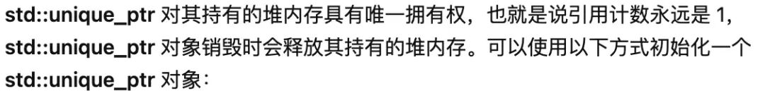 std::unique_ptr禁止复制语义,为了达到这个效果, std::unique_ptr类的拷贝构造函数和赋值运算符(operator=)被标记为delete。