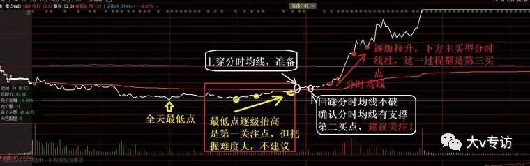 第二关注点:上穿均线。第一次上穿分时均线时,可能是诱多,只做准备,不动手;在分时均线上方运行一段时间后回踩均线,但是不跌破,随后拉升,这个过程技术上称为“回踩均线不破”。回踩均线不破是成功率相对较高的关注点。
