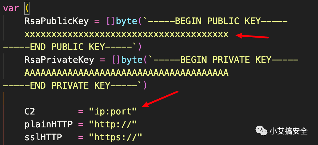 config.go文件中需要修改两处,复制其中的PUBLIC KEY至config中对应位置,修改C2地址为监听器的url