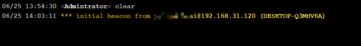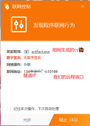 我们先选择允许,然后回到cs客户端查看是否上线成功。
