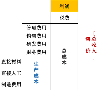 但是请注意,这里不含税价格2000元又由两部分组成,成本1000元(黄色),也就是你的采购成本,另外的1000元是毛利(灰色),是在出售过程中增值的部分。