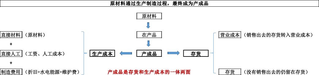 存货与资产负债表有关,生产成本与利润表有关,而产成品则将存货和生产成本融为一体,产成品是存货和生产成本的一体两面。