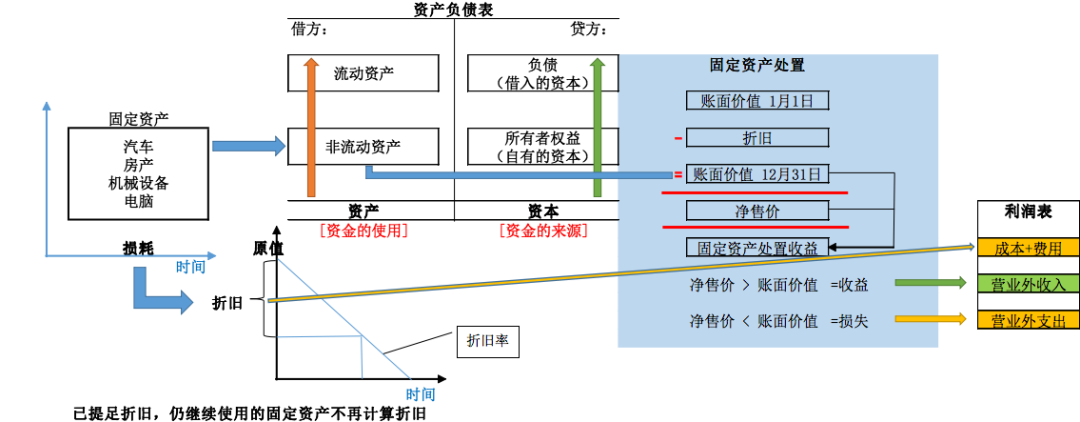 固定资产、折旧和利润表之间的关联内容总结为下面这张图,如图所示: