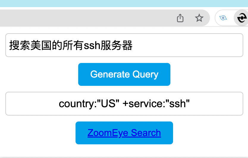 由人工智能实验室 OpenAI 发布的对话式大型语言模型 ChatGPT,在中外各大媒体平台掀起了一阵狂热之风,迅速以其强大的信息整合和对话能力惊艳了全球。与此同时,AI 技术也正在不断的在与其他领域进行结合,为我们带来许多创新工具和解决方案。在此背景下,ZoomEye 打造了 ZoomEyeGPT 希望能够为用户提高搜索效率,体验 AI与网络空间探测的碰撞。ZoomEyeGPT 浏览器插件是一款基于 GPT 的 Chrome 浏览器扩展程序,旨在为 ZoomEye 的用户带来 AI 辅助搜索的体验。该插件可以自动生成批量查询 ZoomEye 语法,非常适合行为测绘。除此之外,对于不了解 ZoomEye 搜索语法的用户,也可以通过该插件的语法转换功能,把自然语言转换成 ZoomEye 搜索语法。这些功能将大大提升用户在 ZoomEye 上的搜索效率和准确度,使用户能够更快地找到所需信息。ZoomEyeGPT 现已开源,Github 地址:https://github.com/knownsec/ZoomeyeGPTZoomEyeGPT 插件已发布到 Chrome 插件商店,可通过 Chrome 插件商店直接安装。