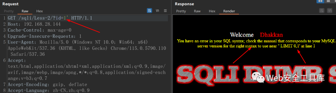 报错注入是一种利用数据库在执行恶意 SQL 语句时生成错误信息的方法。攻击者试图构造恶意 SQL 查询,以便服务器返回包含有关数据库结构或数据的错误信息。攻击者可以利用这些错误信息来进一步攻击目标系统。GET /sqli/Less-2/?id=1' HTTP/1.1