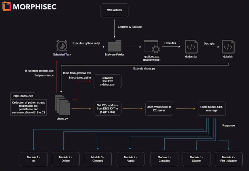 2023 年 1 月,研究人员发现了一个令人担忧的趋势,即许多客户(主要是物流和金融领域的客户)受到了Chaes 新型高级变体的攻击。据观察,从 2023 年 4 月到 2023 年 6 月,威胁的复杂性在多次迭代中不断增加。这不仅仅是普通的 Chaes 变体,它经历了重大修改:从完全用 Python 重写(导致传统防御系统的检测率较低)到通信协议的全面重新设计和增强。此外,它现在还拥有一套新模块,可以进一步增强其恶意功能。值得注意的是,Chaes 恶意软件对于网络安全领域来说并不是全新的。它的首次亮相可以追溯到 2020 年 11 月,当时 Cybereason 的研究人员强调其业务主要针对拉丁美洲的电子商务客户。