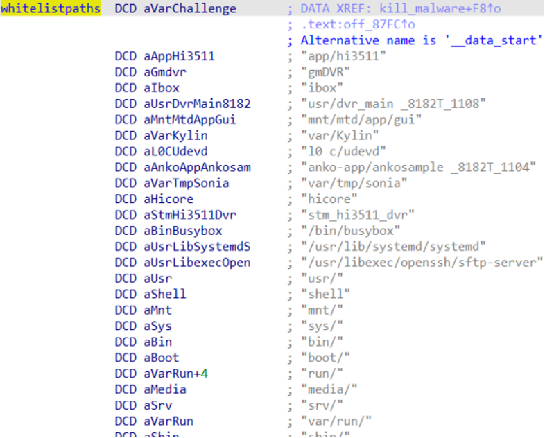 在其中某个版本中,会通过内置硬编码的白名单路径进行过滤查杀: