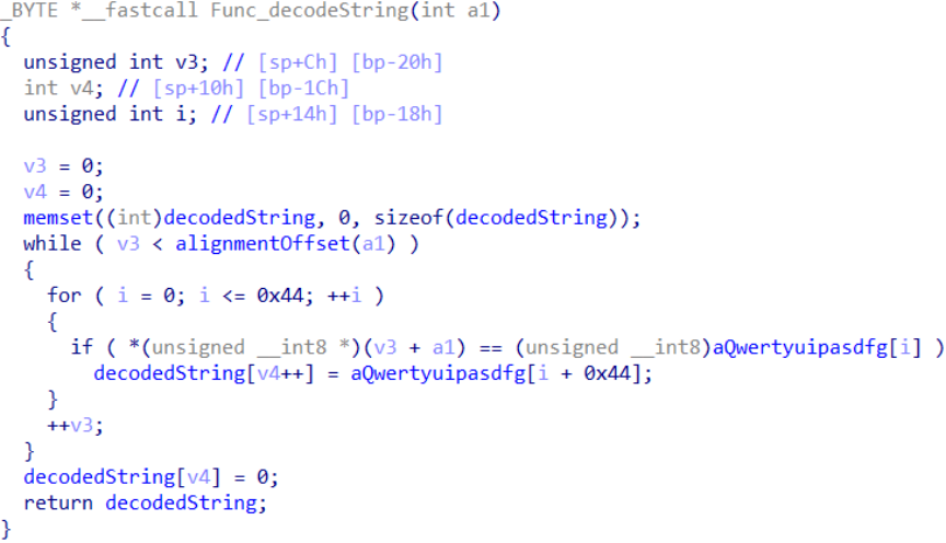 在2021年的某个版本中发现其对重要字符串存在加密,在使用前利用自编写的解密函数进行解密: