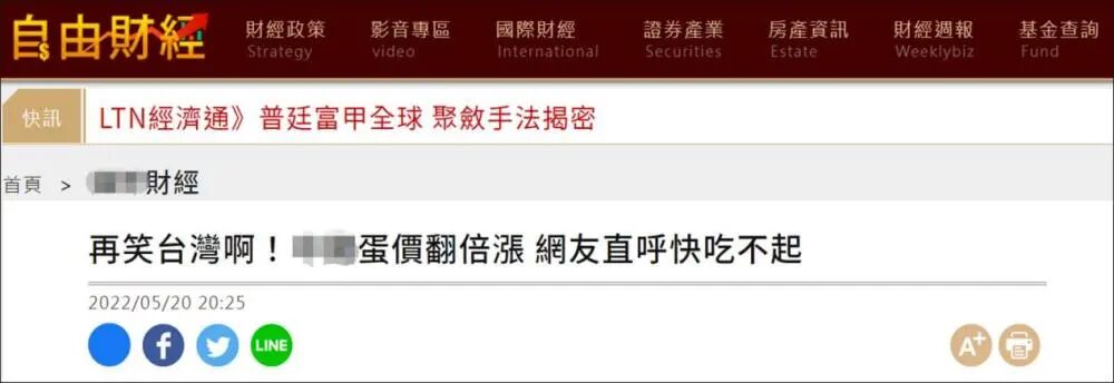 2022年5月20日,岛内多家绿媒又来炒作中国部分地区蛋价上涨的问题,TW《自由 时报》报道称,由于疫情封控,货运受阻以及集中备货需求激增,大陆蛋价节节攀升,从每斤4块钱一路上涨到了7、8块钱,并渲染成“大陆民众一片哀嚎,直呼快吃不起鸡蛋”。