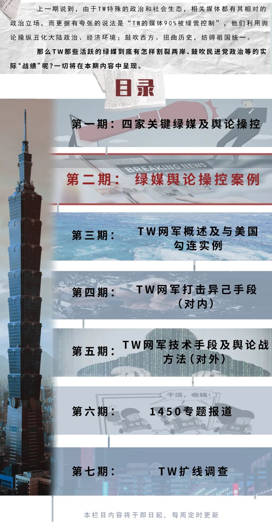 TW媒体称新冠肺炎为“武汉肺炎” (图源:Twitter)抹黑大陆、煽动仇恨是这伙人的惯用伎俩,只要能够在两岸同胞间制造隔阂、对立和对抗,只要能够挑起事端、鼓吹“台独”、谋取政治私利,他们就趋之若鹜。他们对大陆台商台胞冷言冷语,“不要事事要求TW政府为你担当风险,不要浪费TW人的爱心和纳税钱”。他们妄言“武汉疫情烧出‘TW优先’或‘中国优先’的正面交锋”“‘TW优先’是主流民意”。这伙人里,既有顽固坚持“台独”立场的报纸、电台、电视台,也有民进党豢养的“网军”。疫情来袭,这些“台独”媒体和“网军”显得无比亢奋,不失时机煽动“反中仇中”情绪,助力民进党当局“以疫谋独”。从禁止口罩出口大陆到阻碍在鄂台胞返乡,从关闭“小三通”到拒绝陆配子女回台……民进党当局一系列视同胞生命健康如草芥、视大陆为仇敌的举动,绿媒和“网军”总第一时间跳出来叫好,言语更不堪,气焰更嚣张。有民进党高官引用未经证实的百科网站数据抹黑大陆抗疫成果,公然造谣的行径却无人约束;岛内绿营豢养的网军对世卫组织总干事谭德塞持续进行人身攻击、谩骂,民进党当局各部门沆瀣一气,忙着矢口否认,还要谭德塞道歉。可是,如今民进党掌握着行政、立法、司法、监察等机构,修改了特定法律条文,外加联合绿色媒体、绿营网军,加强了对TW舆论的掌控力度。凡是称赞中国大陆的言论,凡是批评民进党当局的言论,绿色阵营都可以把它们当做谣言来批斗,进而将说话者人肉、曝光,让绿色媒体和网军对他们大肆围攻。凡是有利于形塑“亲美、抗中、保台”氛围的言论,制造“绿色气氛”的言论,他们都会开绿灯,称之为“保障言论自由”。反正“一朝权在手,便把令来行”,究竟是不是假新闻、是不是谣言,还不是民进党当局一句话的事情?若有人敢加以质疑,就给他被扣上“舔中卖台”的帽子。 只是,防民之口甚于防川,民进党当局假“言论自由”之名,行招摇撞骗之实,还要把异己之声全部打成“谣言”,肆无忌惮地欺世盗名,终究要自吞苦果。绿媒媒体一旦发现有公众人物有亲中举动,马上就会发文批评,比如滚出TW之类的口号。例如,2022年5月,大陆短视频平台上兴起“全国各地来上分”挑战,14日,田丽发布了挑战视频,伴随着轻快的背景乐,田丽介绍了自己的家乡话,“我是中国的,中国TW的,TW阿里山的,阿里山邹族,邹族话是这样说,爸爸叫阿莫,妈妈叫伊诺,吃饭叫波嫩……”![]()
