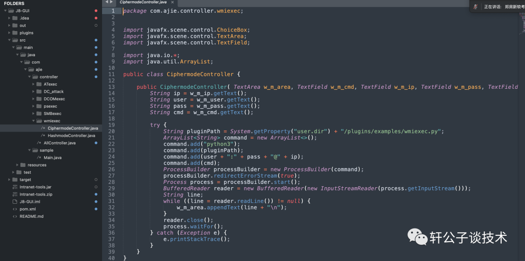 源码结构十分简单,调用impacket.py文件,用javafx套个壳,I/O流输出