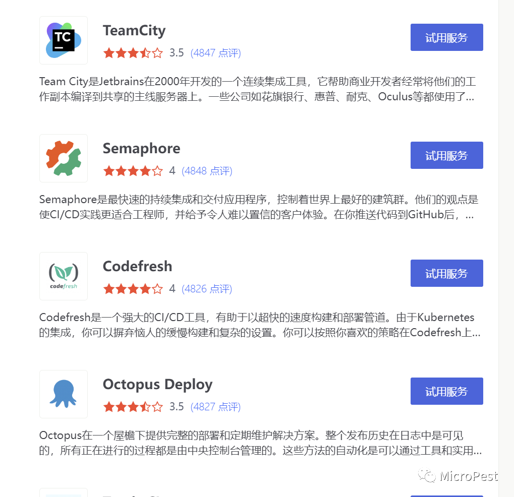 5、总体感觉就是,未来就是 “快速的持续集成和交付应用程序” 的时代,而且现已有了不少这样的产品,如: