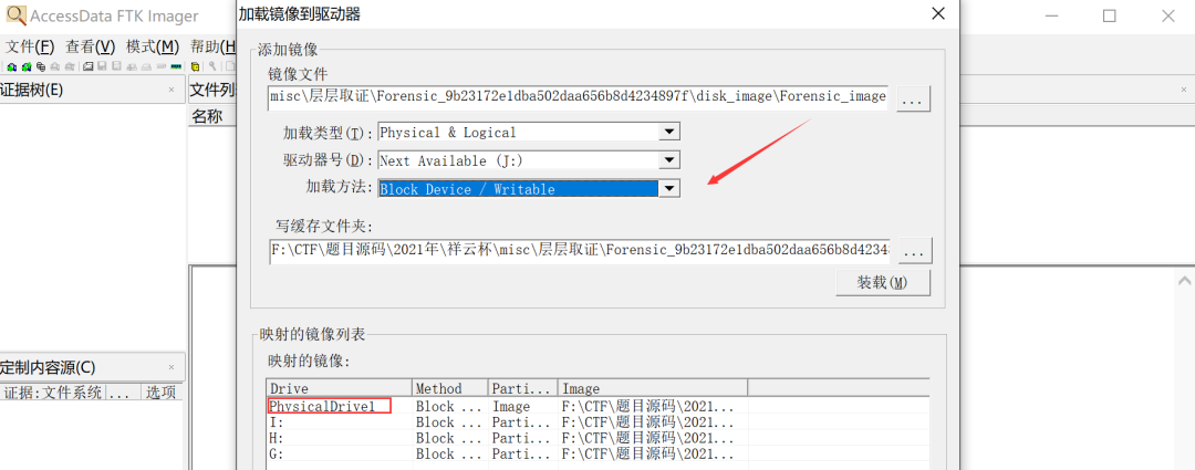 点击文件->镜像加载,然后将Forensic_image文件进行导入,加载方法选择可写,然后点击转载即可。