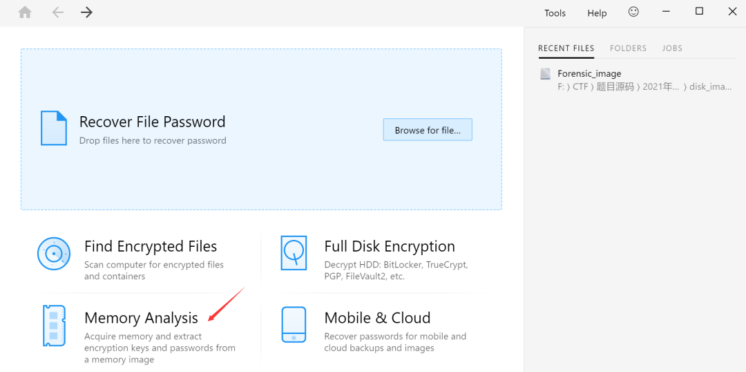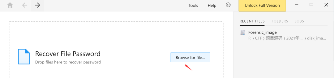 Passware Kit还可以用来解密BitLocker,选择Browser for file进行导入镜像文件。