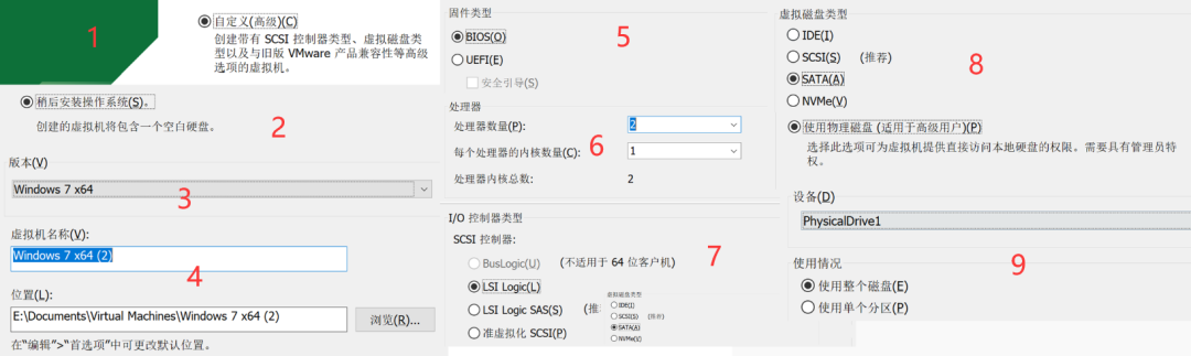 这里要注意的是第9步的设备选择要和挂载的映射镜像相同,这里是PhysicalDrive1,然后启动虚拟机即可仿真成功。