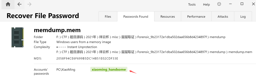 以祥云杯的层层取证为例,这样很快就跑出来密码,这个功能差不多相当于mimikatz。