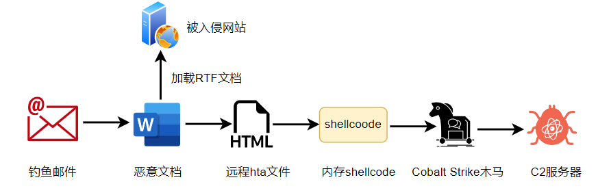 近日,安恒信息的研究人员捕获到了一个神秘中的APT组织——Lone Wolf组织针对俄罗斯实体的多个攻击样本。经进一步了解发现,该组织已入侵俄罗斯长达三年,其最早的攻击可追溯至2020年10月份。Lone Wolf组织的攻击样本数量在不断增加,尤其是在2023年,研究人员便已捕获到了36个攻击样本,攻击频率呈现出急剧上升的趋势。研究人员表示,Lone Wolf是一个具有长期目标的APT组织,并且根据目前已知线索,该组织采用多种方式进行攻击,鱼叉式邮件是其最常使用的攻击方式,而诸多俄罗斯境内网站的沦陷也表明该组织拥有不俗的渗透攻击能力,此外攻击者还注册了一些与正规公司域名相似的山寨域名以建立钓鱼网站,进而欺骗用户。经过研究分析,研究人员还表示道,该组织主要具有以下特点:1.对俄罗斯的多个行业进行持续性攻击,包括物流,制造,金融和零售等,并且已经成功入侵了相关公司的官方网站;2.使用以"索赔"、"申诉"、"诉讼"等主题的定向钓鱼邮件进行初始入侵,同时利用俄罗斯各类公司官方网站下发恶意文件,最终植入Cobalt Strike Beacon恶意后门;3.攻击技术不断提高,从早期粗暴的直接远程加载木马逐渐发展到利用漏洞、powershell、shellcode等更复杂隐蔽的方式。攻击链图如下图所示。