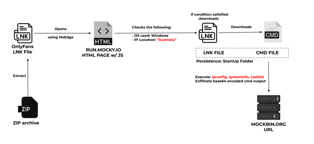 近期,Zscaler的安全人员发现一起名为Steal-It信息窃取活动,主要针对澳大利亚、波兰、比利时等区域。攻击者通常构造诱饵文件作为初始感染媒介,在NTLMv2哈希窃取感染链中,受害者下载的诱饵ZIP文档中包含一个恶意LNK文件,LNK文件运行后将从远程站点下载并执行另一个PowerShell脚本。根据研究人员分析,该PowerShell脚本是Nishang的Start-CaptureServer.ps1脚本的定制版本,专门用于捕获NTLMv2哈希值。攻击者修改了该脚本的部分功能以进行NTLM哈希窃取。在系统信息窃取感染链中,攻击者使用OnlyFans诱饵来诱使受害者感染恶意软件,此感染链中,脚本只针对澳大利亚IP的Windows系统进行攻击,窃取系统相关信息。在Fansly Whoami感染链中,攻击者脚本针对波兰地区IP,通过Fansly品牌诱导用户下载恶意文件,获取whoami信息并传输至远程服务器。安全人员在分析此次活动的多条感染链中发现存在感染链与APT28组织的某次活动相似。部分攻击链图如下图所示。