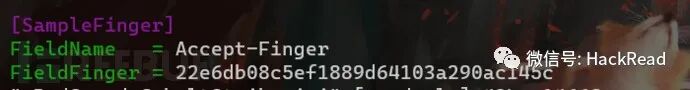 目前已知上述样本指纹,现在我们在RedGuard配置文件中设置自定义的Header字段及样本指纹用于恶意流量拦截。**值得注意的是,这里的Header字段及值可以自定义为更符合实际的,这里为了更好的展现效果所以Accept-Finger与长字段的Hash为例。**我们可以拓展多个样本指纹,不同指纹之间FieldName和FieldFinger字段用逗号分隔,FieldName字段需要和Malleable Profile中配置的Header字段名称保持一致,这也是获取请求包所携带Salt值的重要依据。