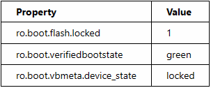{ "ro.boot.vbmeta.device_state", "ro.boot.verifiedbootstate", "ro.boot.flash.locked",