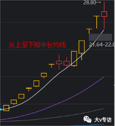 当价格向上突破5日、10日均线时,说明该股短期趋势转强,再突破30日均线时中期趋势转强且一般可确认庄家建仓完毕即将拉升,而下方三条均线特别是三条均线的黄金交叉点更是价格回档时的强有力支撑。