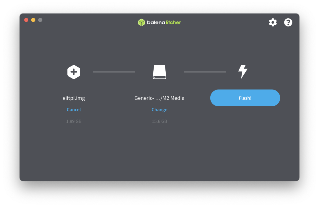 首先,从GitHub下载固件镜像-Elcomsoft/eiftpi,并使用诸如balenaEtcher的软件将其烧录到SD卡中。您可以从此链接下载balenaEtcher:https://etcher.balena.io/。然后按照以下步骤进行操作: