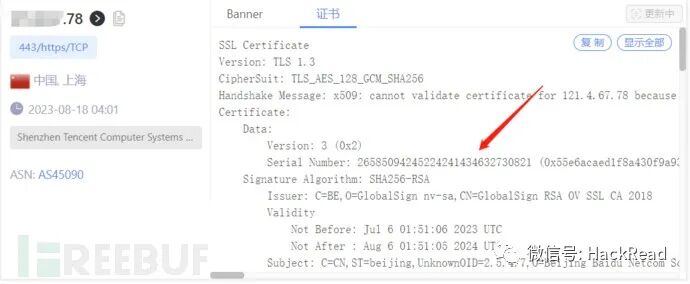 通过网络空间测绘发现2291个独立IP,进行验证确定均为百度所属TLS证书,如果单从通信流量来看是比较难判断是否为恶意通信的,而上面针对域前置+C2前置流量设施的TLS证书进行了伪造,成功对空间测绘与威胁情报实现了干扰,造成了错误的信息关联,使得攻击者的流量特征更加逼真,实现了伪造正常通信流量的目的。