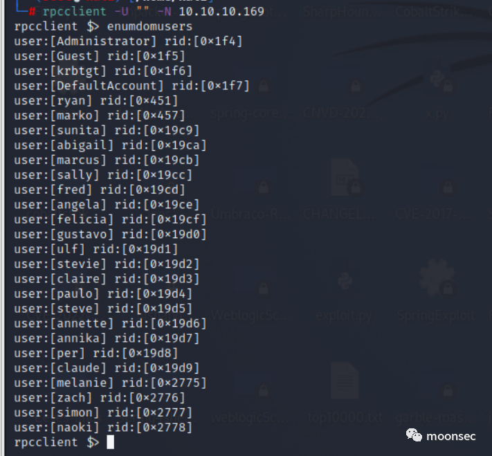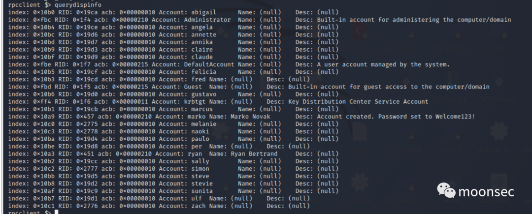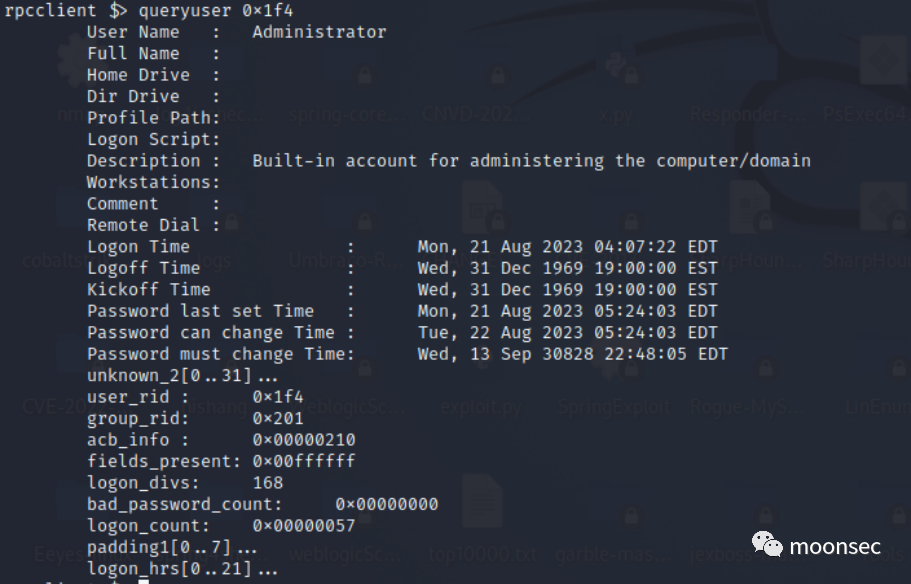 使用 enumdomusers 列出用户,然后查询0x1f4的用户信息。