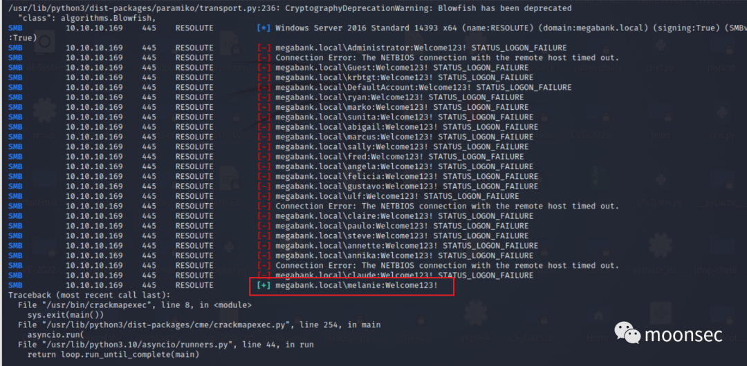 用之前enum4linux收集到一份用户名单,然后进行爆破。