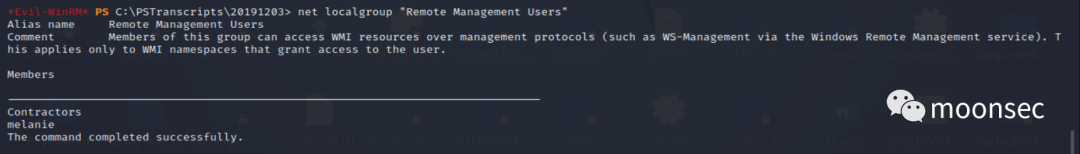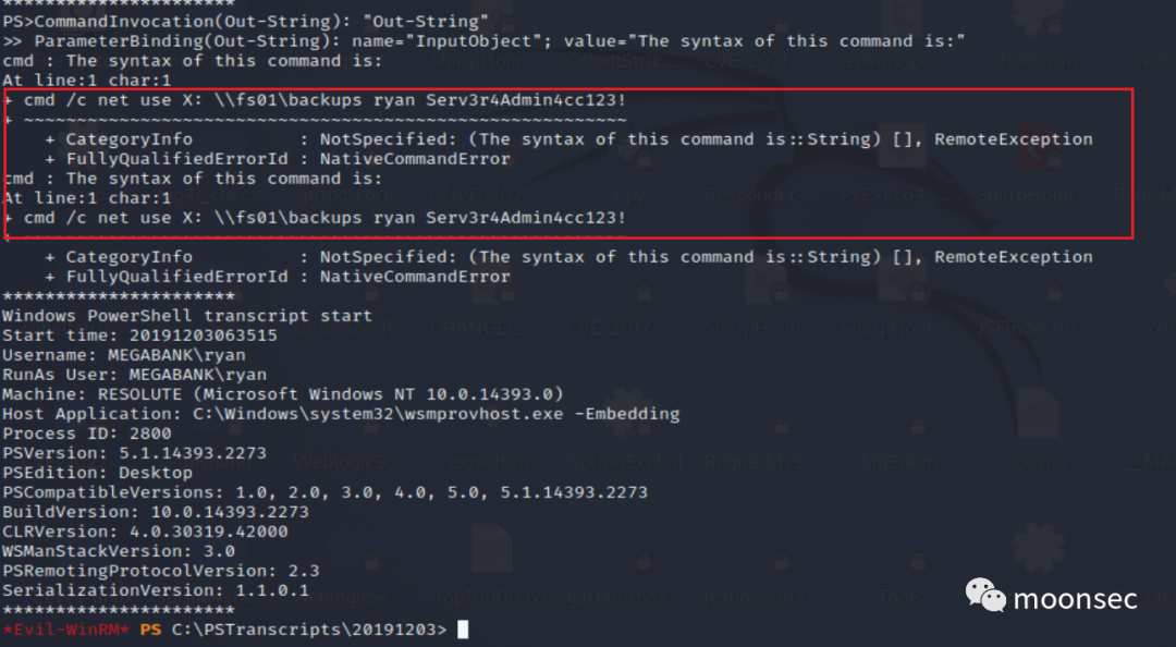 ParameterBinding(Invoke-Expression): name="Command"; value="cmd /c net use X: \\fs01\backups ryan Serv3r4Admin4cc123!发现ryan这个用户 实际上不在远程管理用户组中。但他在承包商中