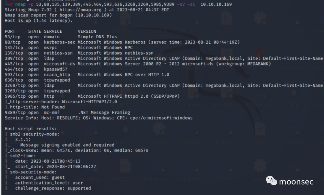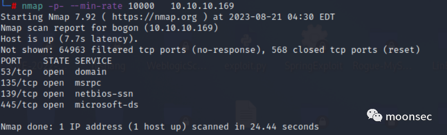 使用nmap去扫描端口,发现存在53、125、139、445等端口开放。