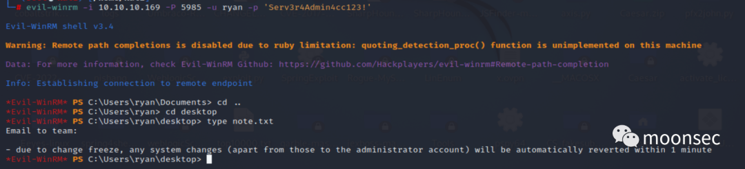使用 Evil-WinRM 以 ryan 用户身份登录