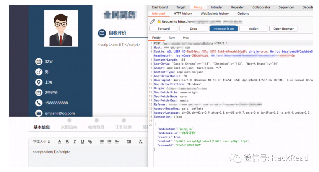 刷新简历可以看到成功弹窗,证明存在存储型xss