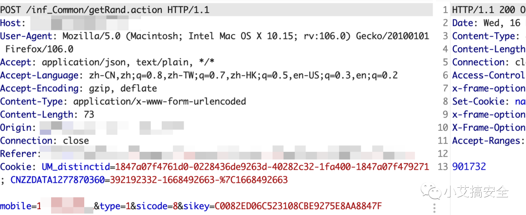 输入手机号,点击获取验证码并抓包