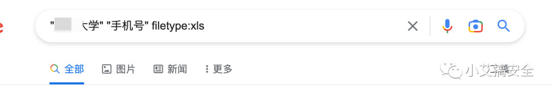 2、谷歌语法搜索 "XX大学" "手机号" filetype:xls 找到一些手机号码