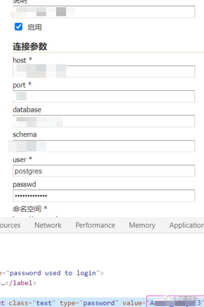 F12查看网页源代码,读取PostgreSQL密码: