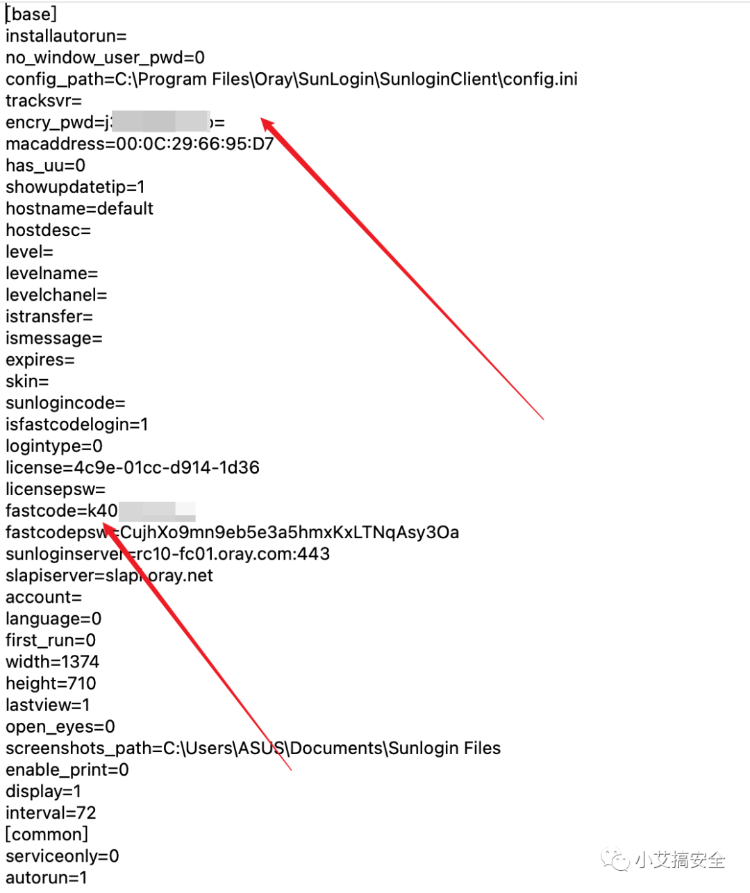 C:\Program Files\Oray\SunLogin\SunloginClient\config.ini为向日葵的默认安装配置文件,直接尝试读取