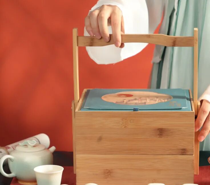 明月,自古就寄托了人们的无限感情,中秋节这天更是将赏月列进习俗。瑶台升明月将明月意向融进画面,木盒为身,精致月饼为内物。看到这方木盒,仿佛穿越至古代,用古人的方式在过中秋。![]()