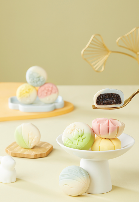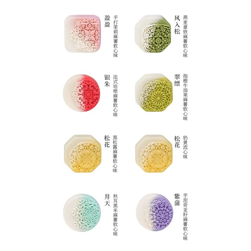 法式培根月饼鲜爽咸香,与麻薯的结合让味蕾有奇妙的咀嚼感,奶黄流心月饼采用特殊蒸馏工艺,保持流心湿润的同时,奶黄香浓,蓉沙饱满细腻。饼皮绵密清甜,淡淡咸香点缀,咸甜相和,入口不淡不腻,回味无穷。芋泥搭配上奇亚籽,舌尖仿佛开启了崭新的篇章,牛油果搭配指橙让月饼口味更年轻化,米香馥郁的奶皮和甜蜜内馅包裹着水果的清新酸甜,不甜不腻,恰如其分。![]()