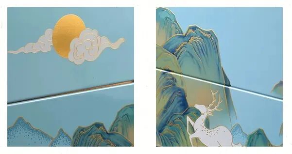 盒身以秀润绵延的山峦为主体,祥云满月点缀其间。整体延续独特的青绿色彩,层次丰富,画风细腻,有一种艺术品的美感。![]()