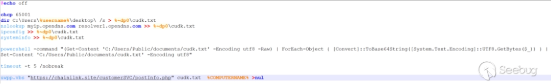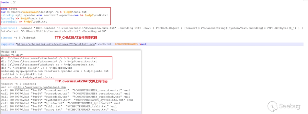 本次捕获的样本与6月份捕获的使用TTP_oversizeLnk2BAT的攻击样本整体功能比较一致,均使用vbs/bat脚本上传文件及下载后续载荷: