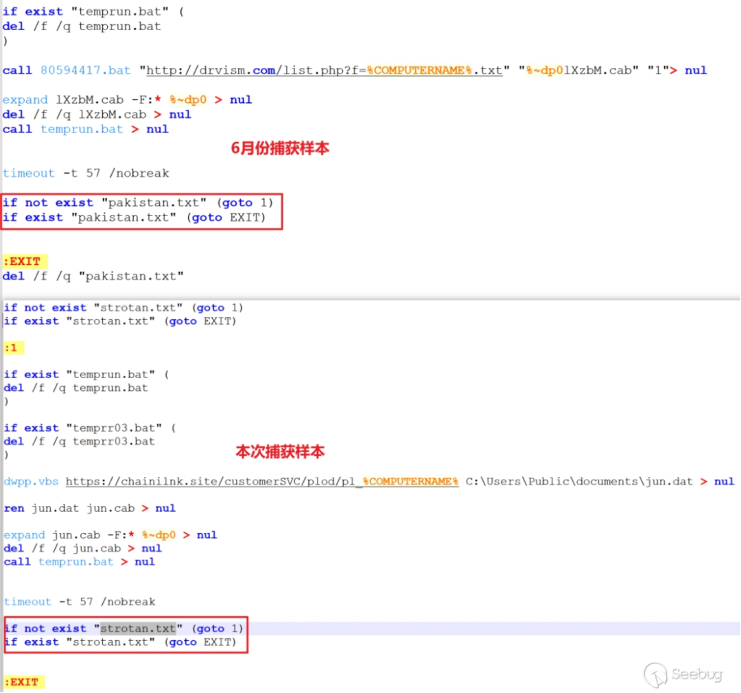 6月份捕获的攻击样本中使用pakistan.txt作为执行流标记,而本次发现的样本改用strotan.txt作为执行流标记:
