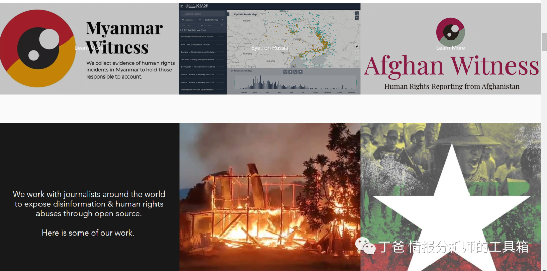 “俄罗斯之眼”项目,收集和核实与俄罗斯与乌克兰战争有关的视频、照片、卫星图像或其他媒体。目标是为记者、非政府组织、政策制定者和公众提供经过验证、值得信赖的信息。